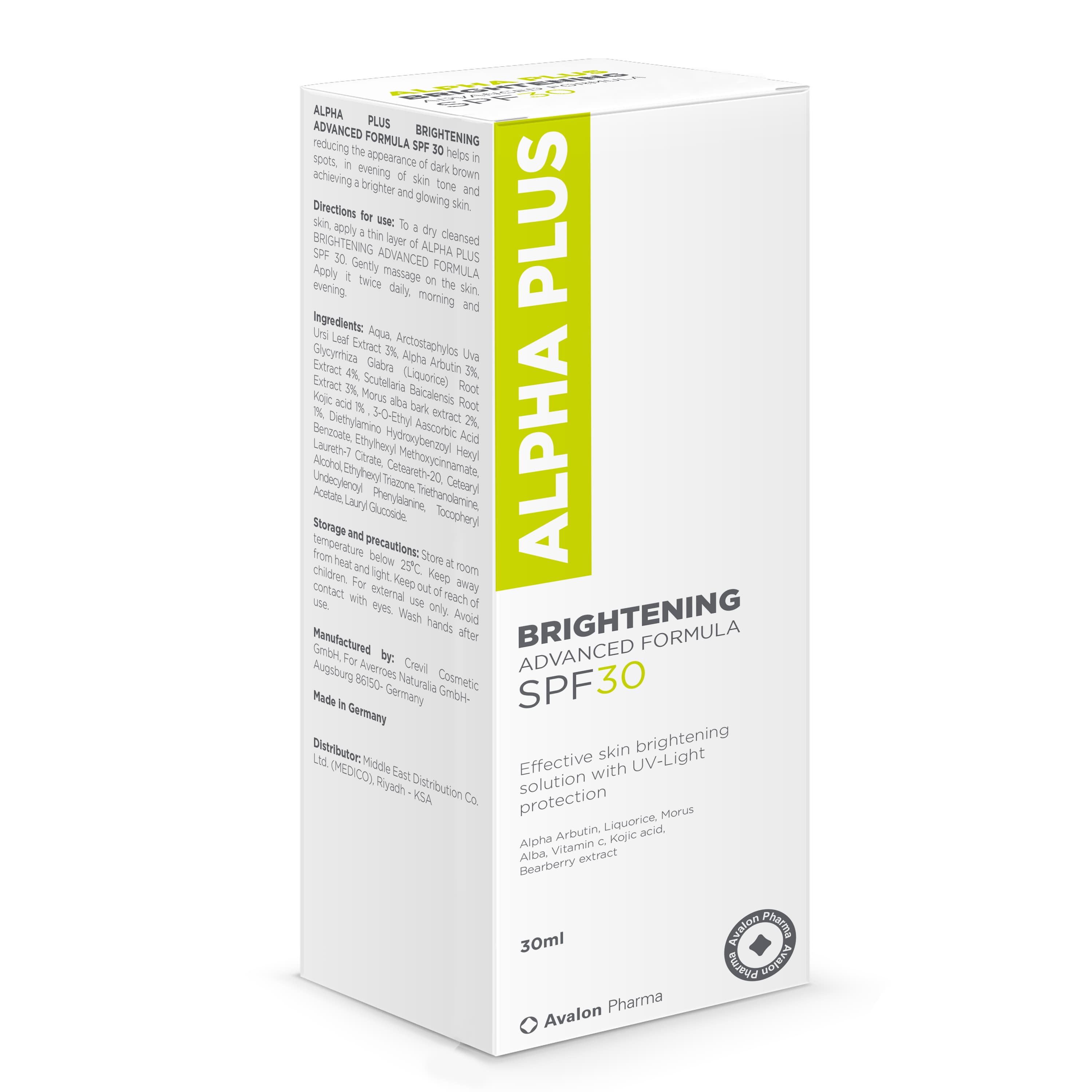 Q: What does Alpha Plus Brightening Advanced Formula SPF30 do?