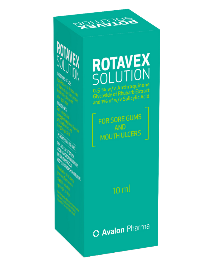 Rotavex is an oral solution for soothing mouth ulcers and denture irritation.