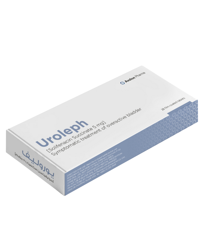 Uroleph is a medicine for people who have an overactive bladder. It contains solifenacin succinate and works by relaxing the bladder muscles, which helps reduce sudden strong urges to urinate, frequent trips to the bathroom, and accidental leaks. This allows you to have better control over your bladder and go about your day more comfortably.
