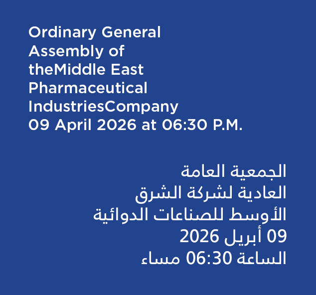 Board of Directors of Middle East Pharmaceutical Industries Co is pleased to invite the shareholders to attend ordinary meetings of the general assembly (first meeting), which is determined to be held at (18:30pm) on Thursday 21/10/1447H corresponding to 09/04/2026 through modern means of technology using Tadawulaty platform.