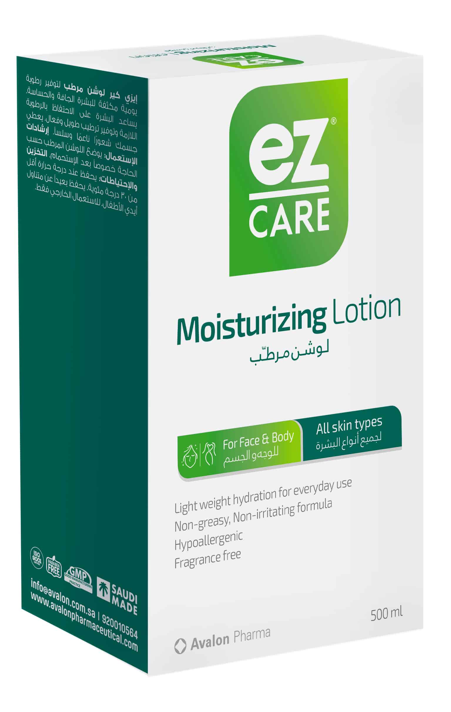 ez CARE Moisturizing Lotion is formulated to provide everyday intense moisture for dry, sensitive skin .It helps skin retain the needed moisture and provide long and efficient hydration . It leaves your body feeling soft and smooth