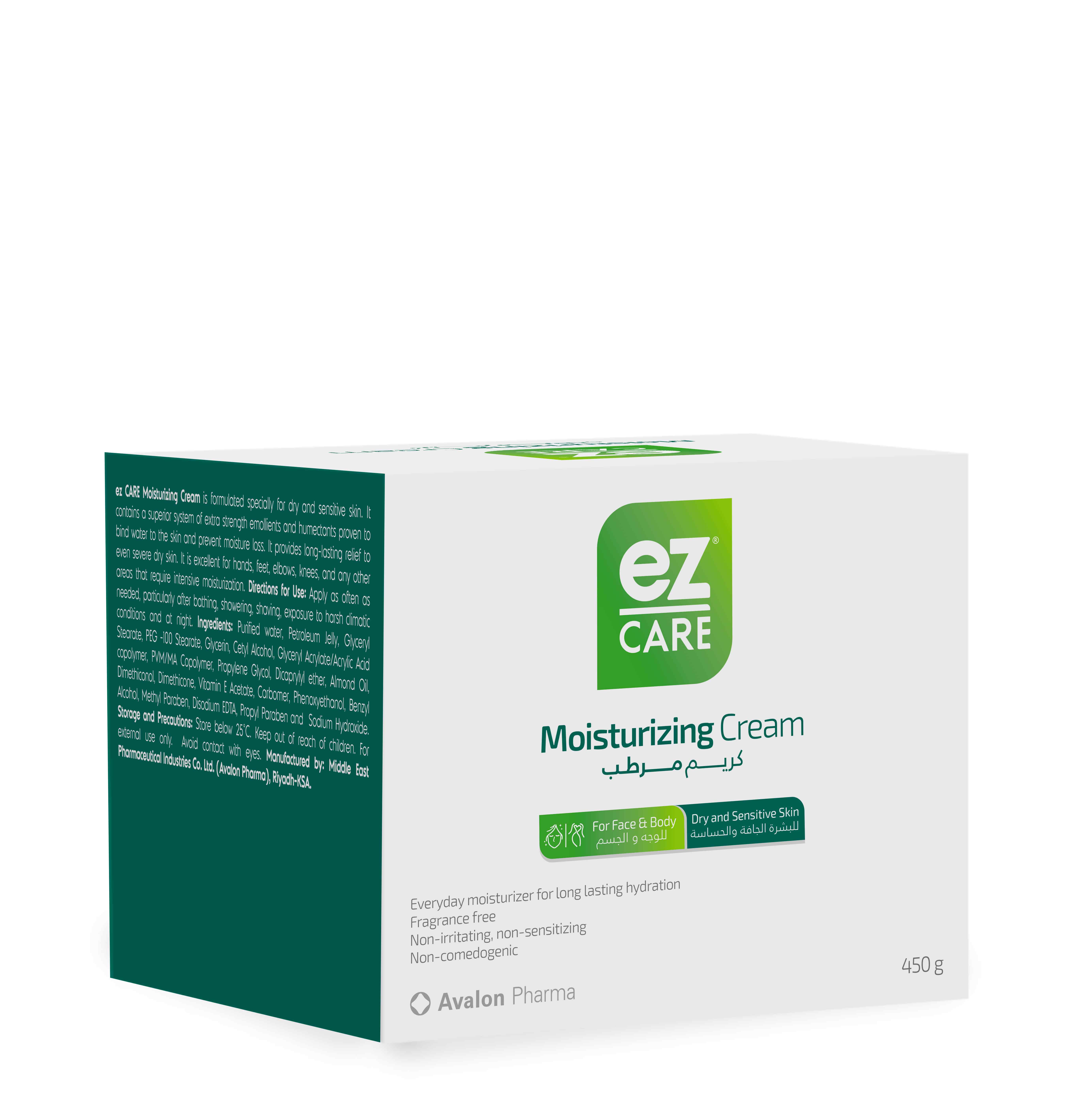 ez CARE Moisturizing Cream is formulated specially for dry and sensitive skin . It contains a superior system of extra strength emollients and humectants proven to bind water to the skin and prevent moisture loss .It provides long-lasting relief to even severe dry skin . It is excellent for hands, feet, elbows, knees and any other areas that require intensive moisturization