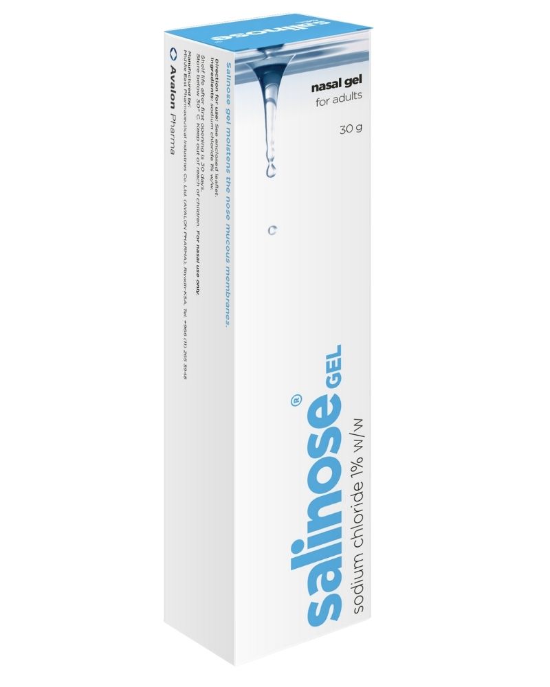 salinose GEL moisturizes dry and inflammed nasal mucosa due to colds, low humidity and mild nasal bleeding or for excessive use of topical nasal decongestants and other nasal preperations. Soothes blocked nasal passages without causing stinging or burning sensation. Used as a nasal moisturizer with oral decongestants and relieves nasal congestion.