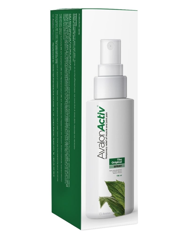 AvalonActiv Original Spray is a counterirritant that relieves muscle and joint discomfort. The easy-to-use spray provides targeted relief for muscle pain in hard-to-reach areas such as the lower back. The formula includes Salicylate, Menthol, and Camphor to reduce inflammation and relieve pain. Ideal for back pain, sprains, and bruising. It’s a practical solution for athletes and active individuals who need quick, effective relief without mess.