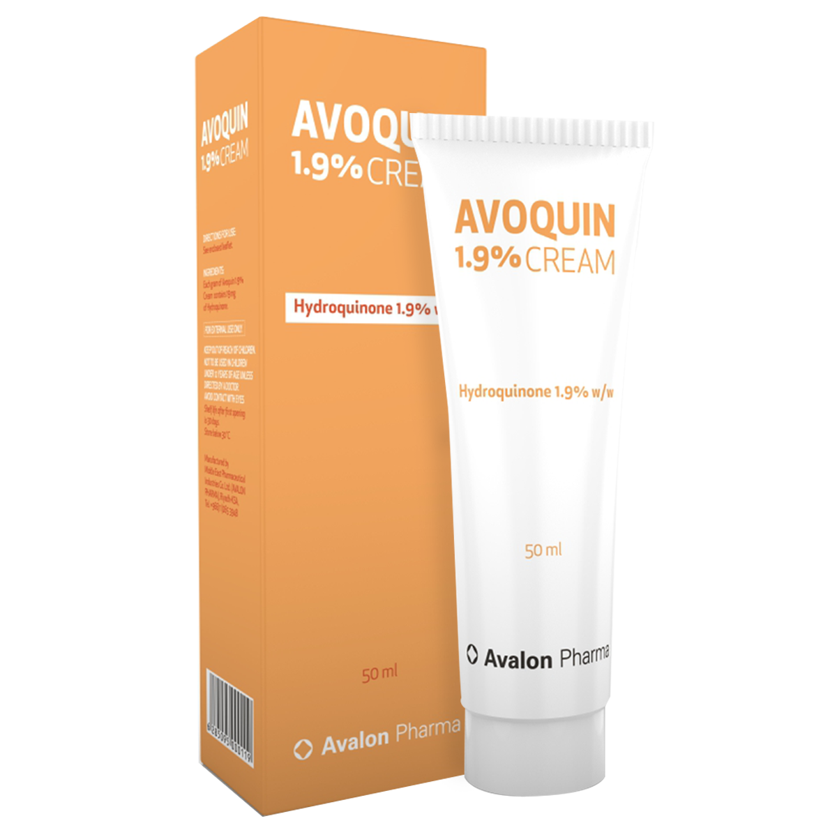 Avalon Avoquin 1.9% is a topical brightening cream (50 ml) formulated with hydroquinone 1.9% to target hyperpigmentation, dark spots, melasma, sun-spots, and post-inflammatory discoloration. It works by inhibiting melanin formation, evening out skin tone while gradually fading unwanted pigmentation. Because of its potent action, it’s applied in small amounts to affected areas (typically twice daily) and should be used along with sun protection. Users are advised to monitor for irritation, avoid use near eyes or sensitive areas, and consult a dermatologist before extended use.